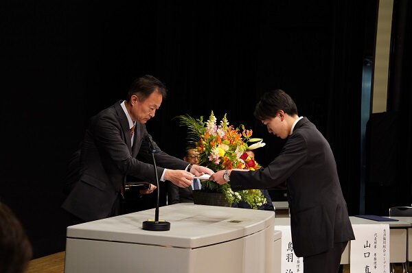 飯島専務理事より壇上で一人ひとりに辞令が授与されました